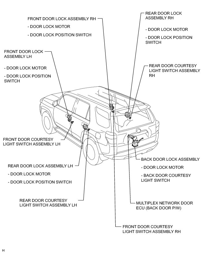 DOOR LOCK: WIRELESS DOOR LOCK CONTROL SYSTEM (w/ Smart Key System): PARTS LOCATION