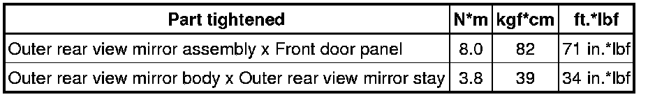 SPECIFICATIONS: MIRROR (EXT): TORQUE SPECIFICATIONS