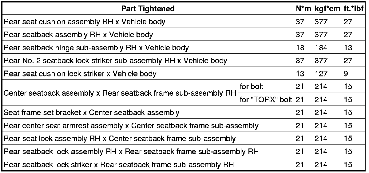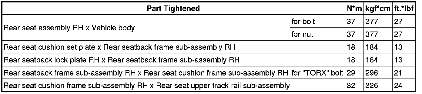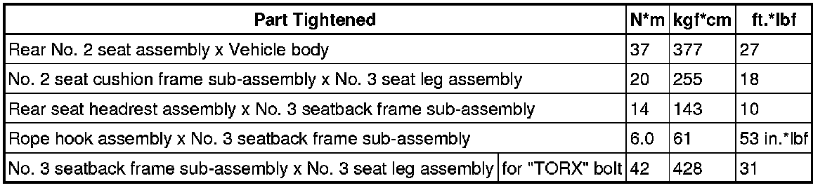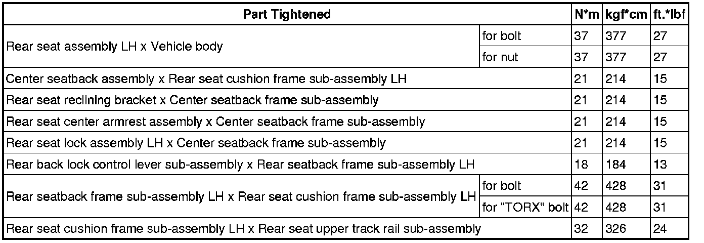 SPECIFICATIONS: SEAT: TORQUE SPECIFICATIONS