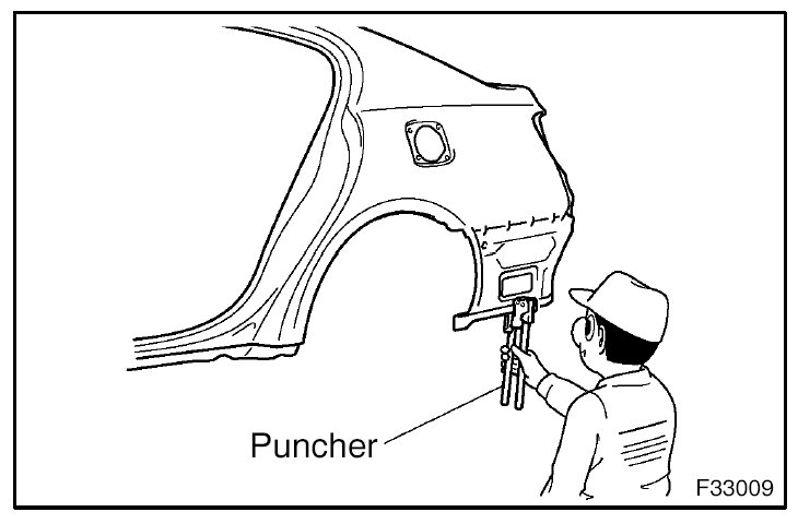 1. For areas where a spot welder cannot be used, use a puncher or drill to make holes for plug welding.