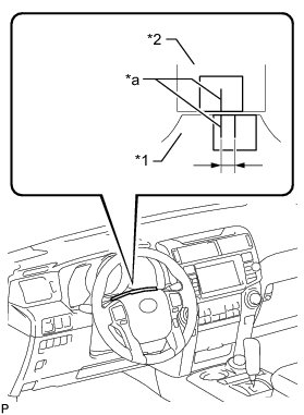 (6) Measure the distance between the 2 lines on the masking tape on the steering wheel.