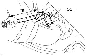 * Use a torque wrench with a fulcrum length of 30 cm (11.8 in.). When using a torque wrench with a fulcrum length that is not 30 cm (11.8 in.), calculate the torque specification for the torque wrench and SST based on the "without SST" torque specification Service Precautions.