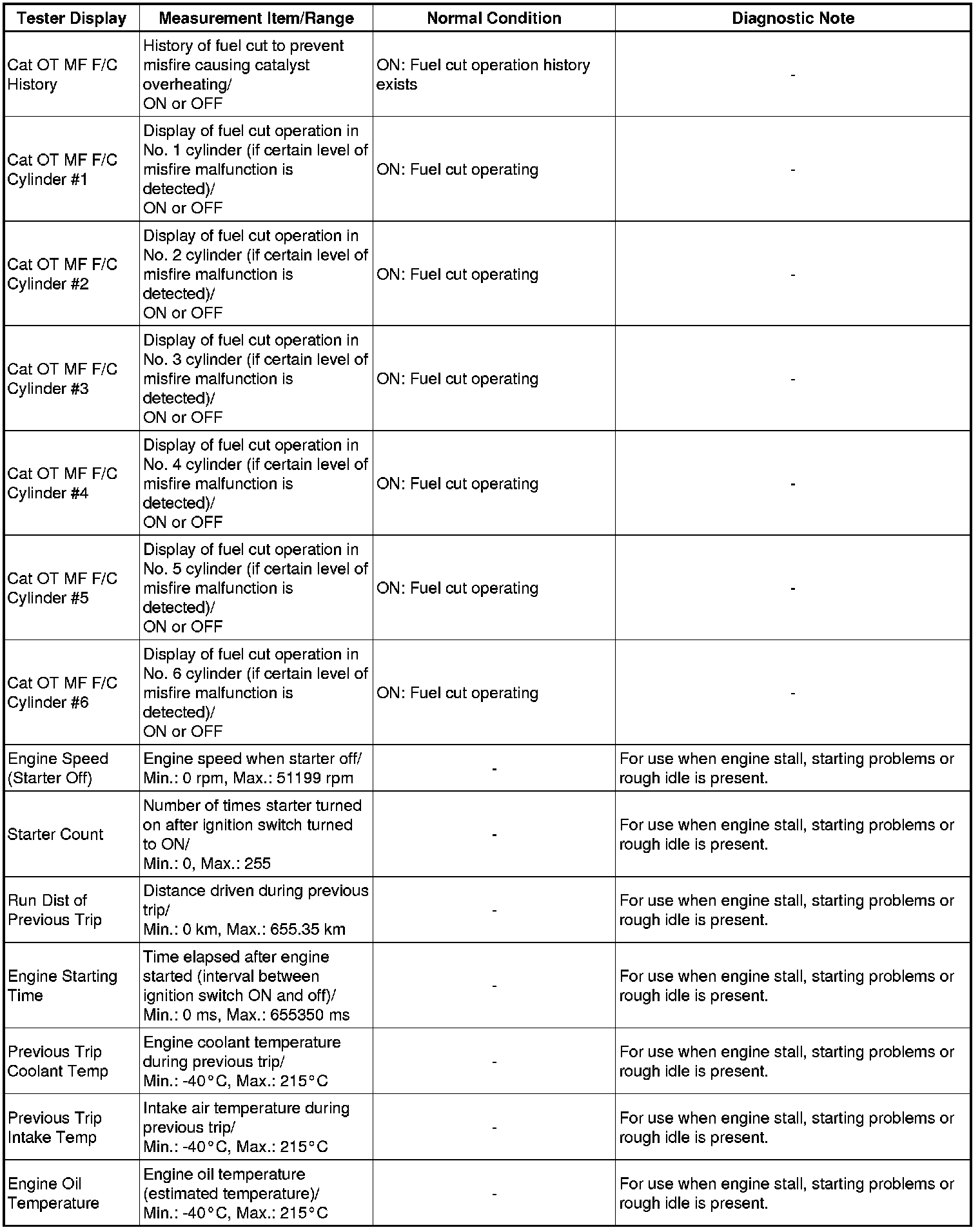 * If the display of the Data List item Catalyst OT MF F/C item is Not Avl, perform this Active Test with the vehicle stopped and the engine idling.