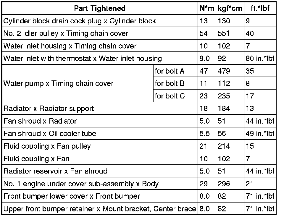 SPECIFICATIONS: 1GR-FE COOLING: TORQUE SPECIFICATIONS