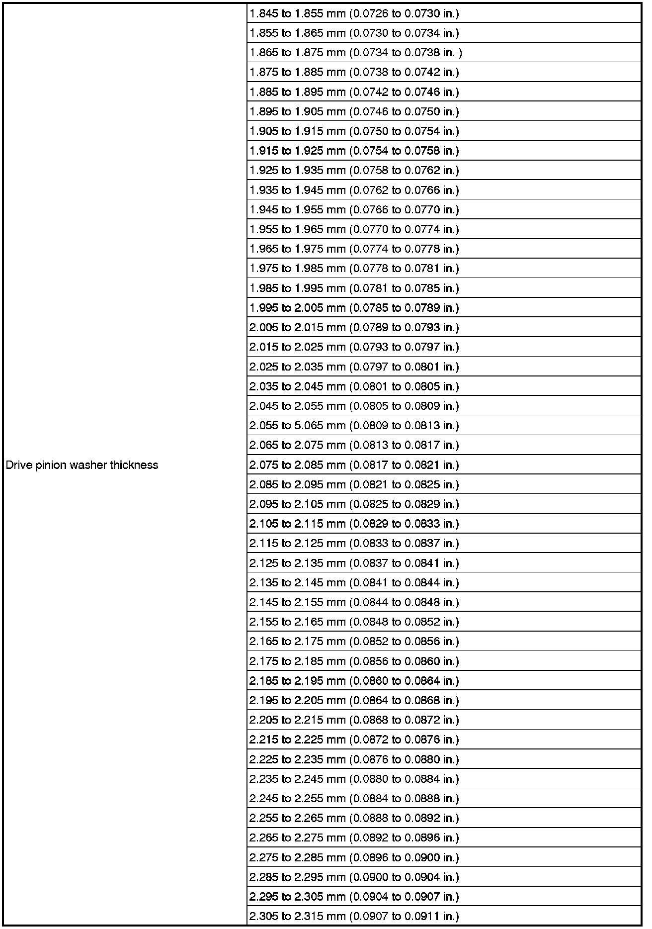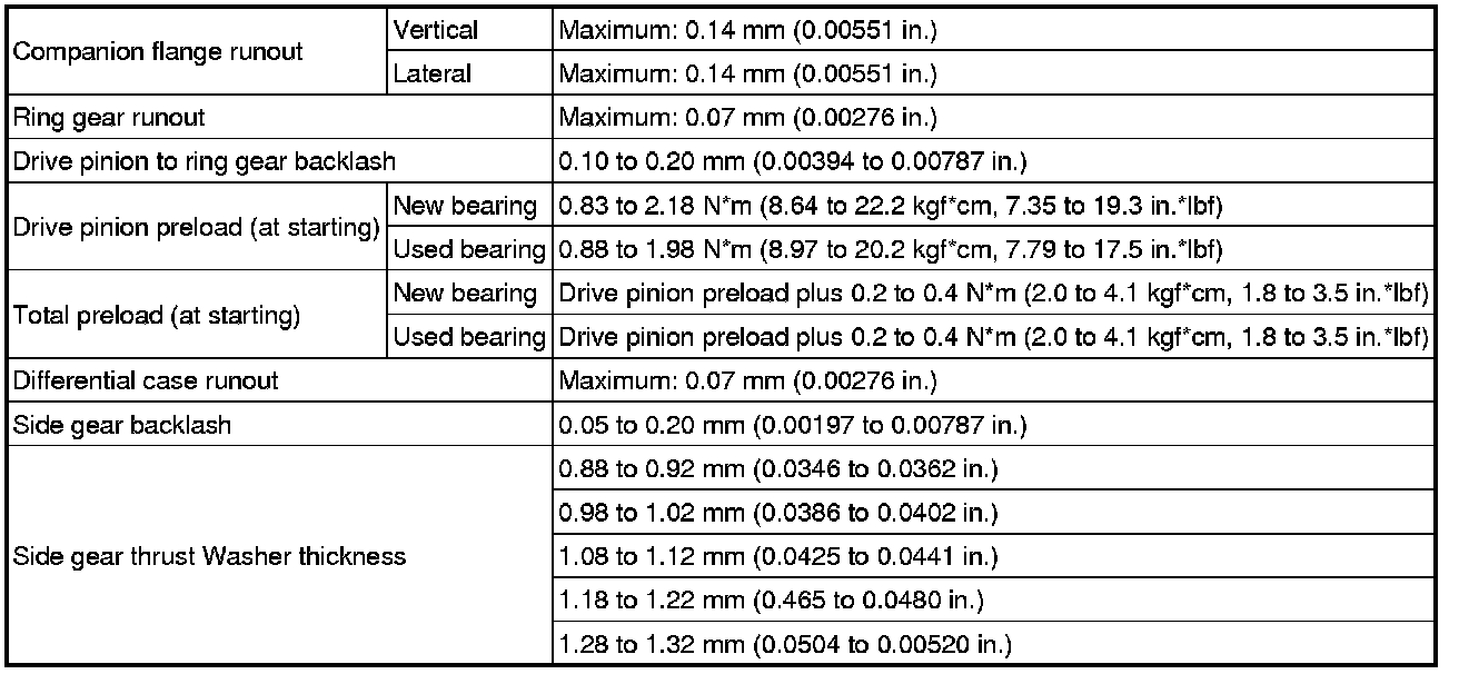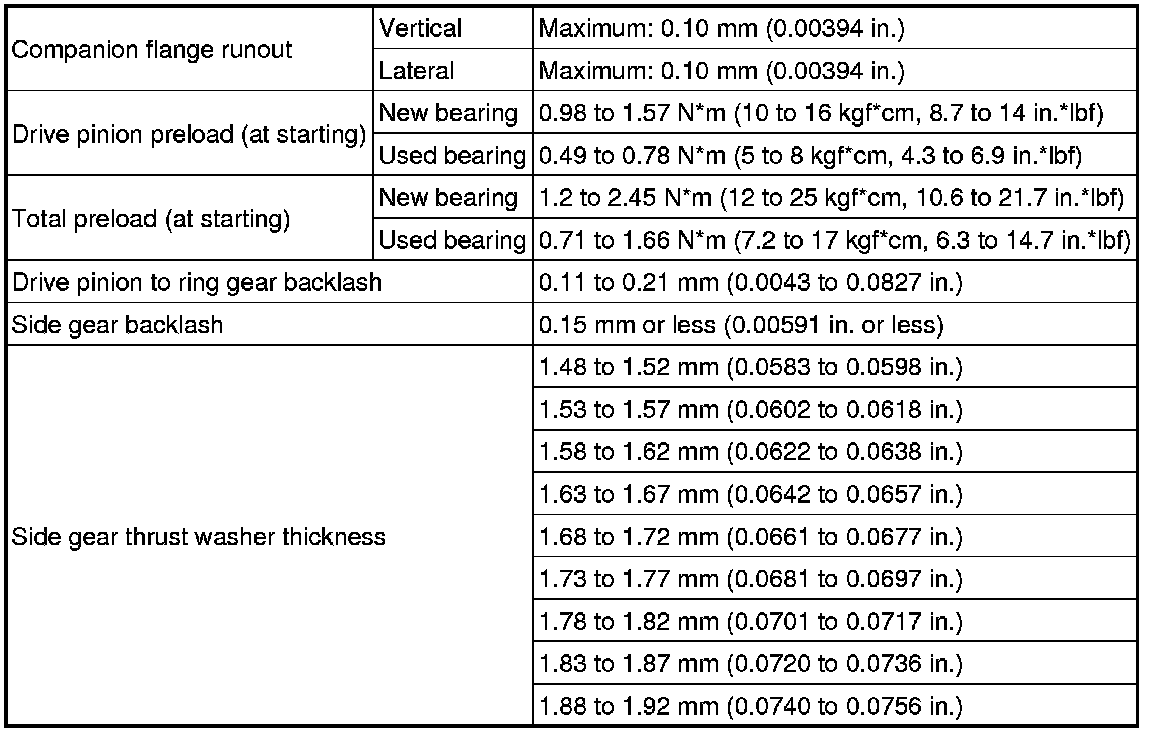 SPECIFICATIONS: AXLE AND DIFFERENTIAL: SERVICE DATA