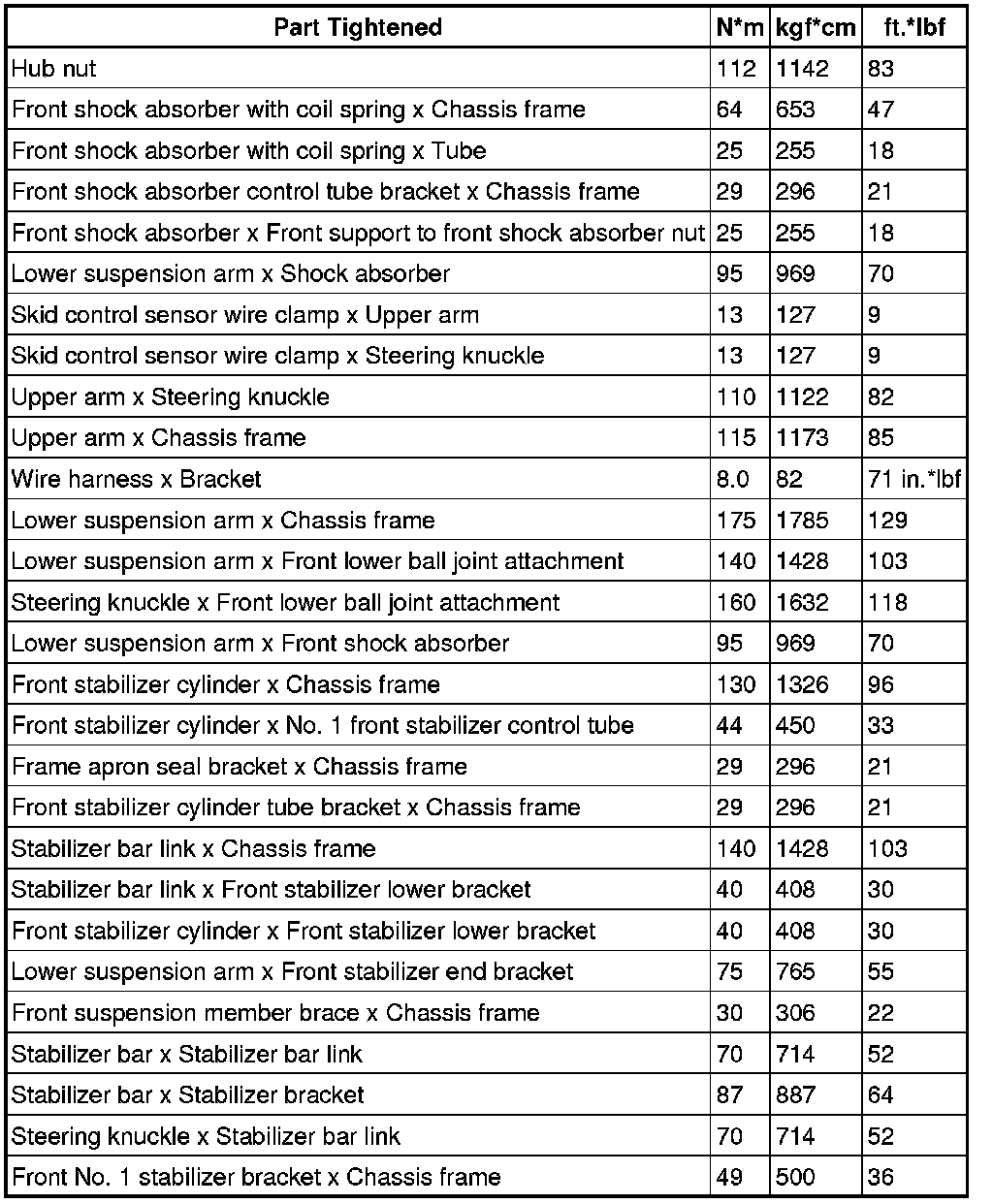 Torque Specifications