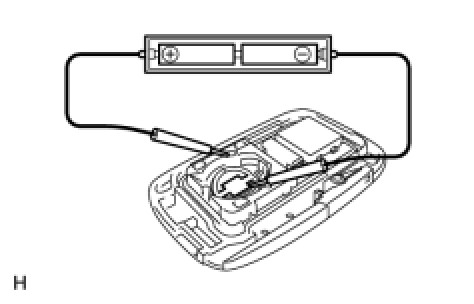 (1) Remove the battery from the electrical key transmitter that does not operate Service and Repair. Attach a lead wire (0.6 mm (0.0236 in.) in diameter or less including wire sheath) with tape or equivalent to the negative terminal.