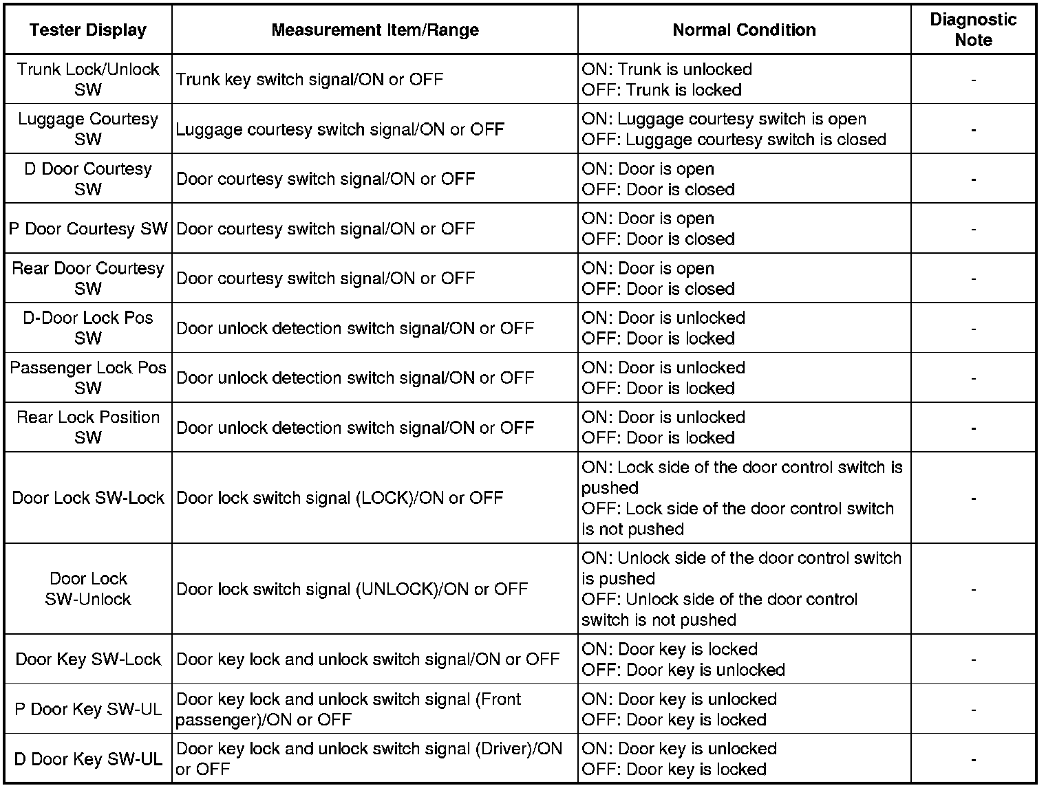 DOOR LOCK: POWER DOOR LOCK CONTROL SYSTEM: DATA LIST / ACTIVE TEST
