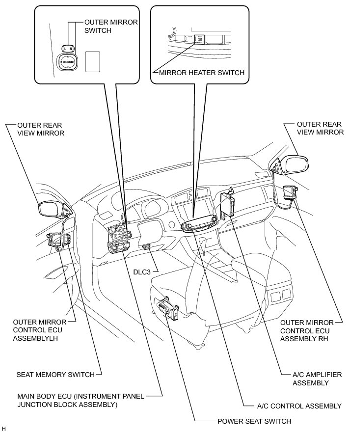 MIRROR: POWER MIRROR CONTROL SYSTEM (w/ Memory): PARTS LOCATION