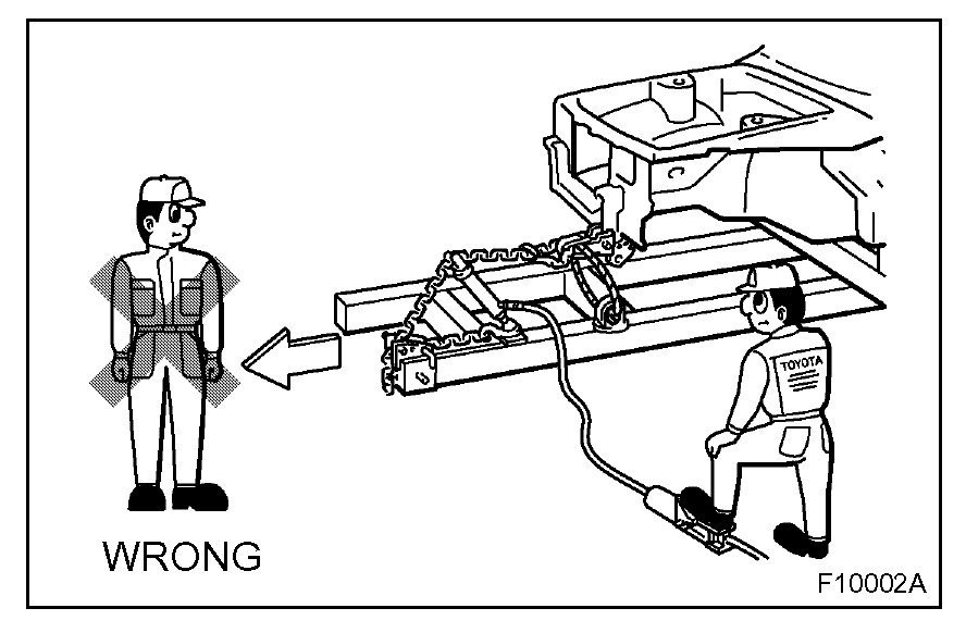 1. Never stand in direct line with the chain when using a puller on the body or frame, and be sure to attach a safety cable.