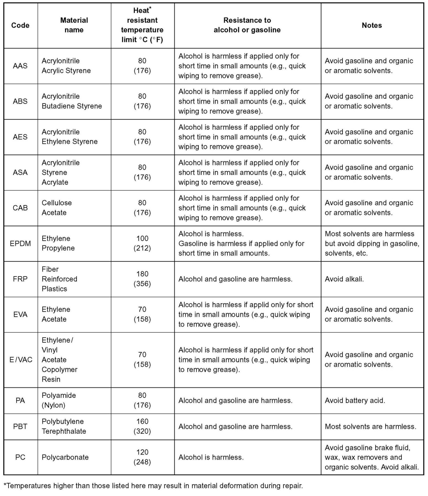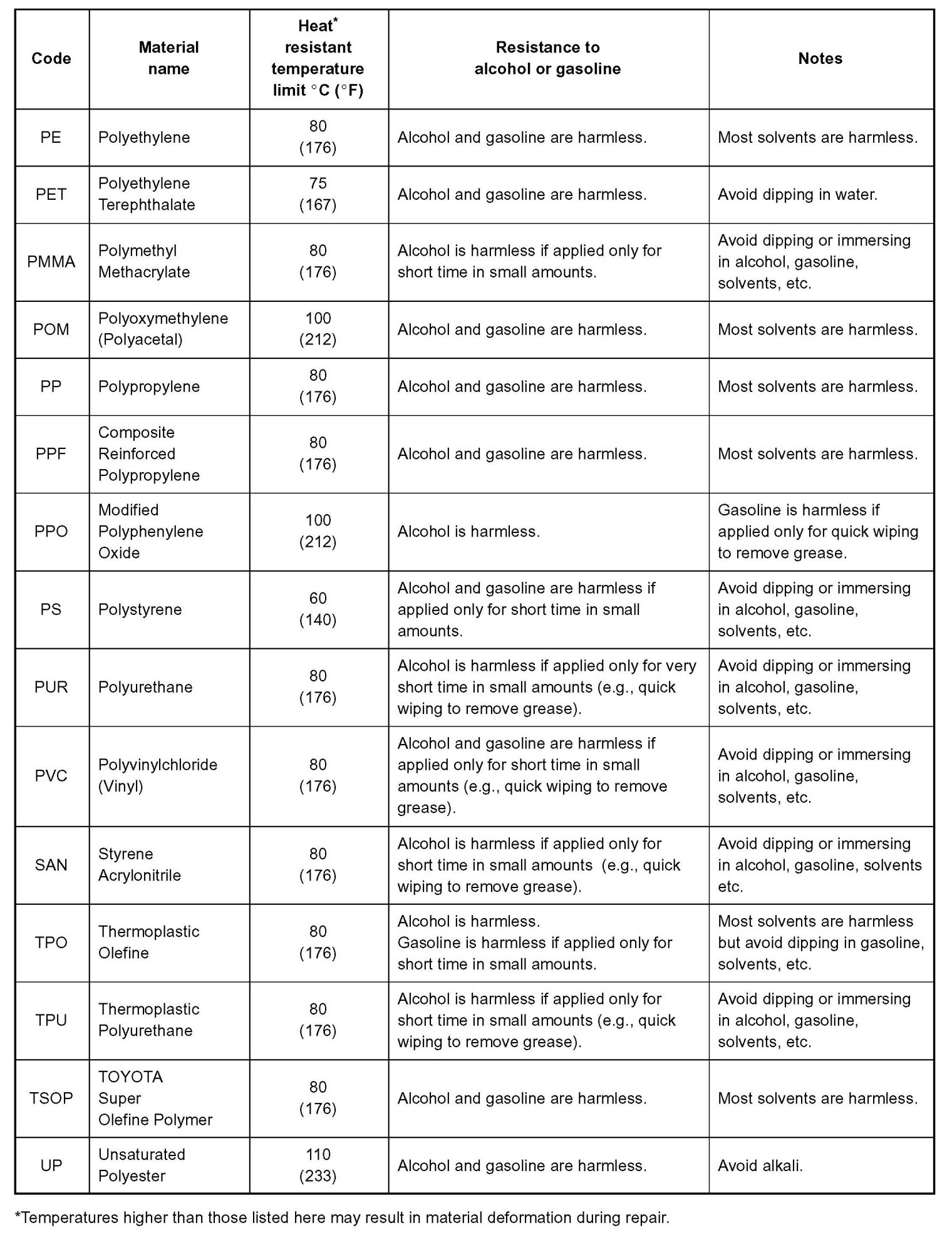 1. The repair procedure for plastic body parts must conform with the type of plastic material.