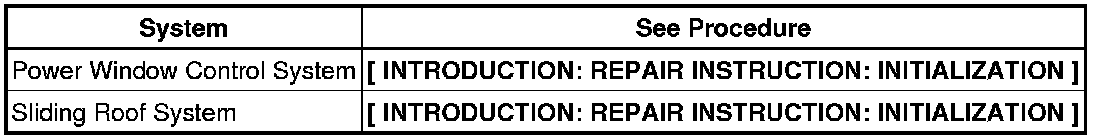 When disconnecting the cable from negative (-) battery terminal, initialize the following systems after the cable is reconnected.