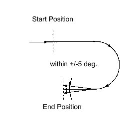 * Make a 180° turn. At the end of the turn, the direction of the vehicle should be within 180° +/- 5° of its start position.