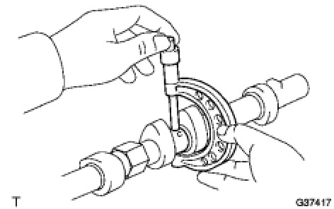 (d) Check that there is no clearance between the gear's fringe and the camshaft.