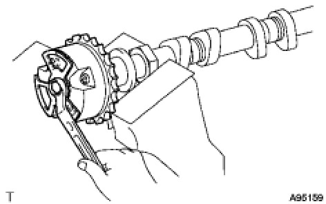(f) Check the lock of the camshaft timing gear.