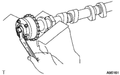(1) Clamp the camshaft in a vise, and confirm that the camshaft timing gear is locked.