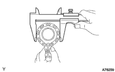 If the diameter is less than the minimum, replace the chain and sprocket.