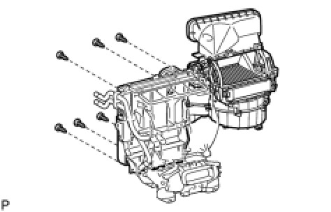 (a) Remove the 6 screws and air conditioning radiator assembly from the blower assembly with evaporator sub-assembly.