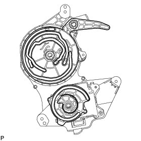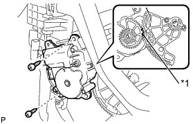 (q) Fully install the top screw, and then install the air outlet control servo motor sub-assembly with the 2 remaining screws.
