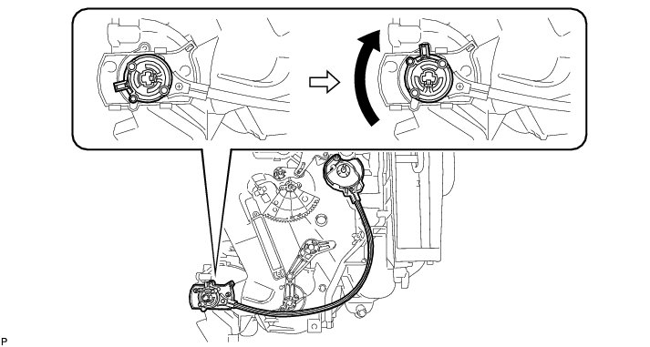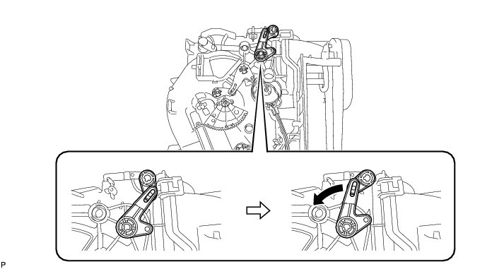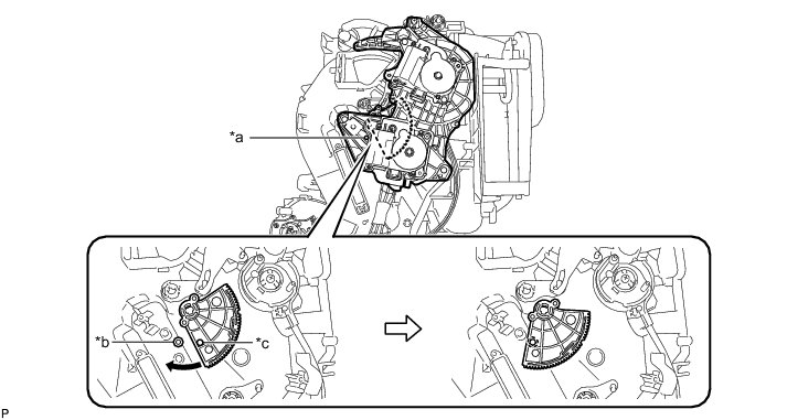 (c) Rotate the link of the air conditioning radiator assembly all the way to the left as shown in the illustration.