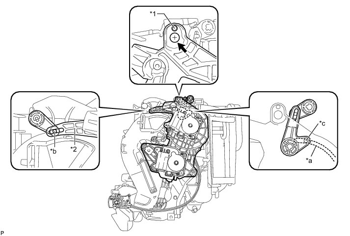 (a) Using the reference point, install the air mix damper servo sub-assembly with the 2 screws.
