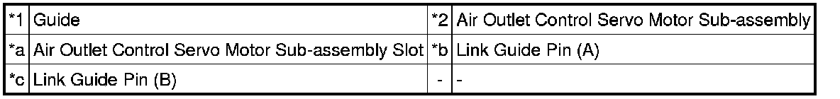 (i) Install the guide hole of the air outlet control servo motor sub-assembly to the guide pin of the air conditioning radiator assembly as shown in the illustration.