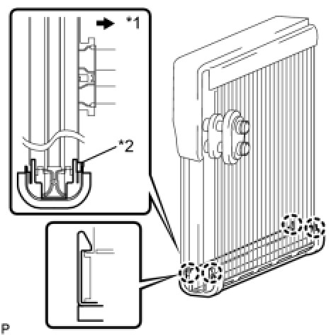 * Avoid tilting the air conditioning radiator assembly during installation. This helps to prevent the guide pins from coming out of position.