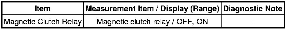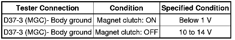 When the A/C switch is turned on, the magnetic clutch ON signal is sent from the MGC terminal of the A/C amplifier. Then, the MG CLT relay turns on to operate the magnetic clutch.