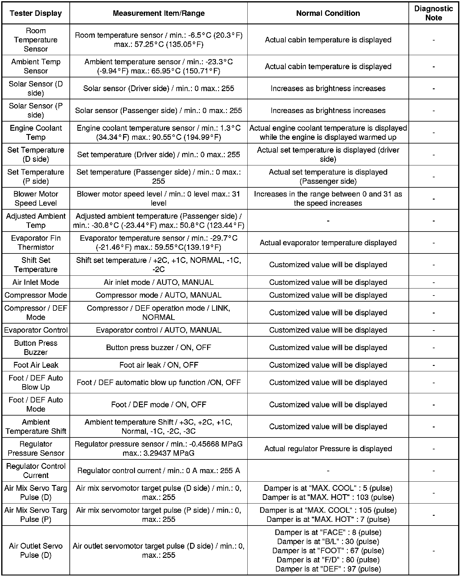 (c) Enter the following menus: Body Electrical / Air Conditioner / Data List.