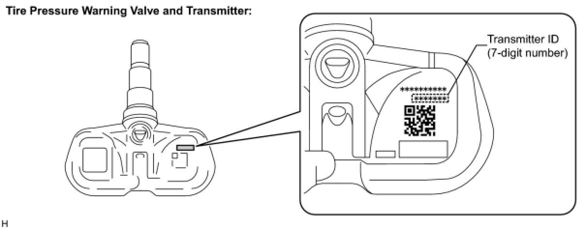The transmitter ID is written on the tire pressure warning valve and transmitter. It will be unable to be read after installing the tire pressure warning valve and transmitter on the tire and wheel. Therefore, take a note of the transmitter ID before installing the tire pressure warning valve and transmitter.