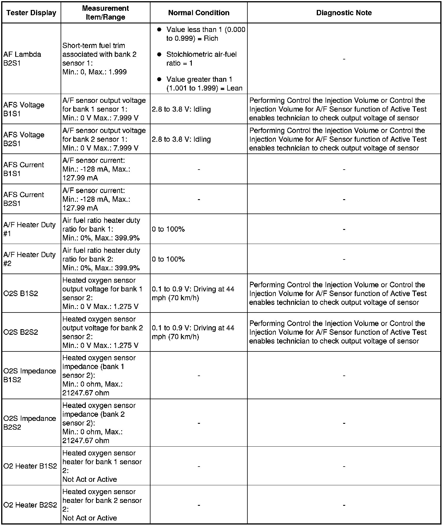 * Normal Condition: If no idling conditions are specified, the shift lever should be in the N or P position, and the A/C switch and all accessory switches should be OFF.