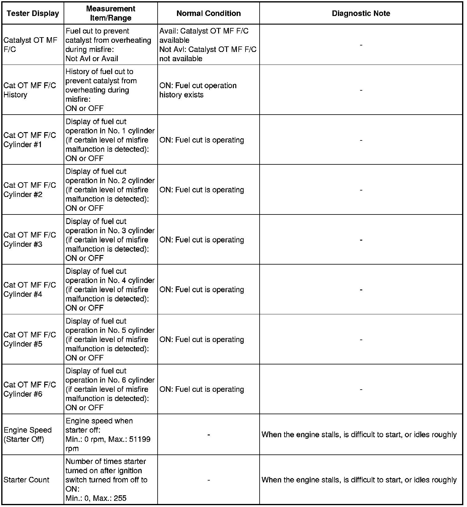 * If the display of the Data List item Catalyst OT MF F/C item is Not Avl, perform this Active Test with the vehicle stopped and the engine idling.