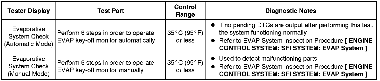 (e) Perform the System Check by referring to the table below.