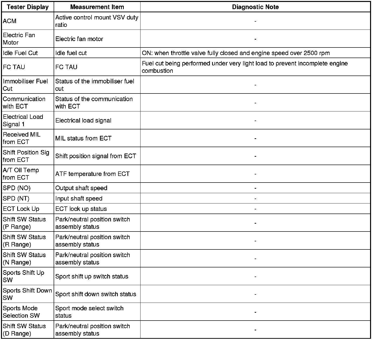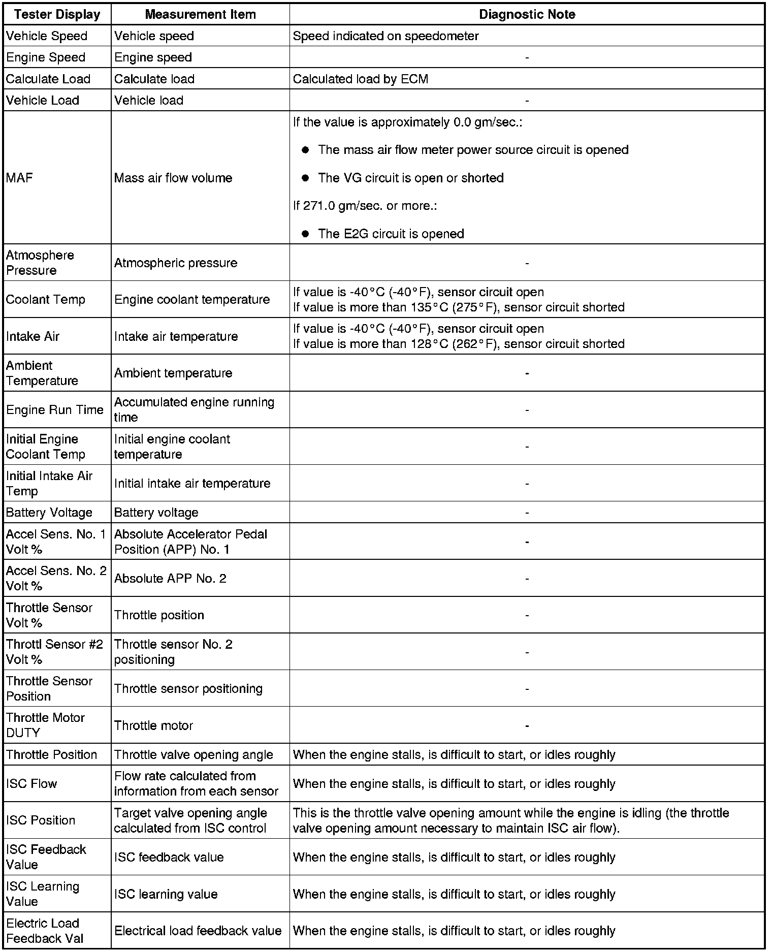 2GR-FE ENGINE CONTROL SYSTEM: SFI SYSTEM: FREEZE FRAME DATA
