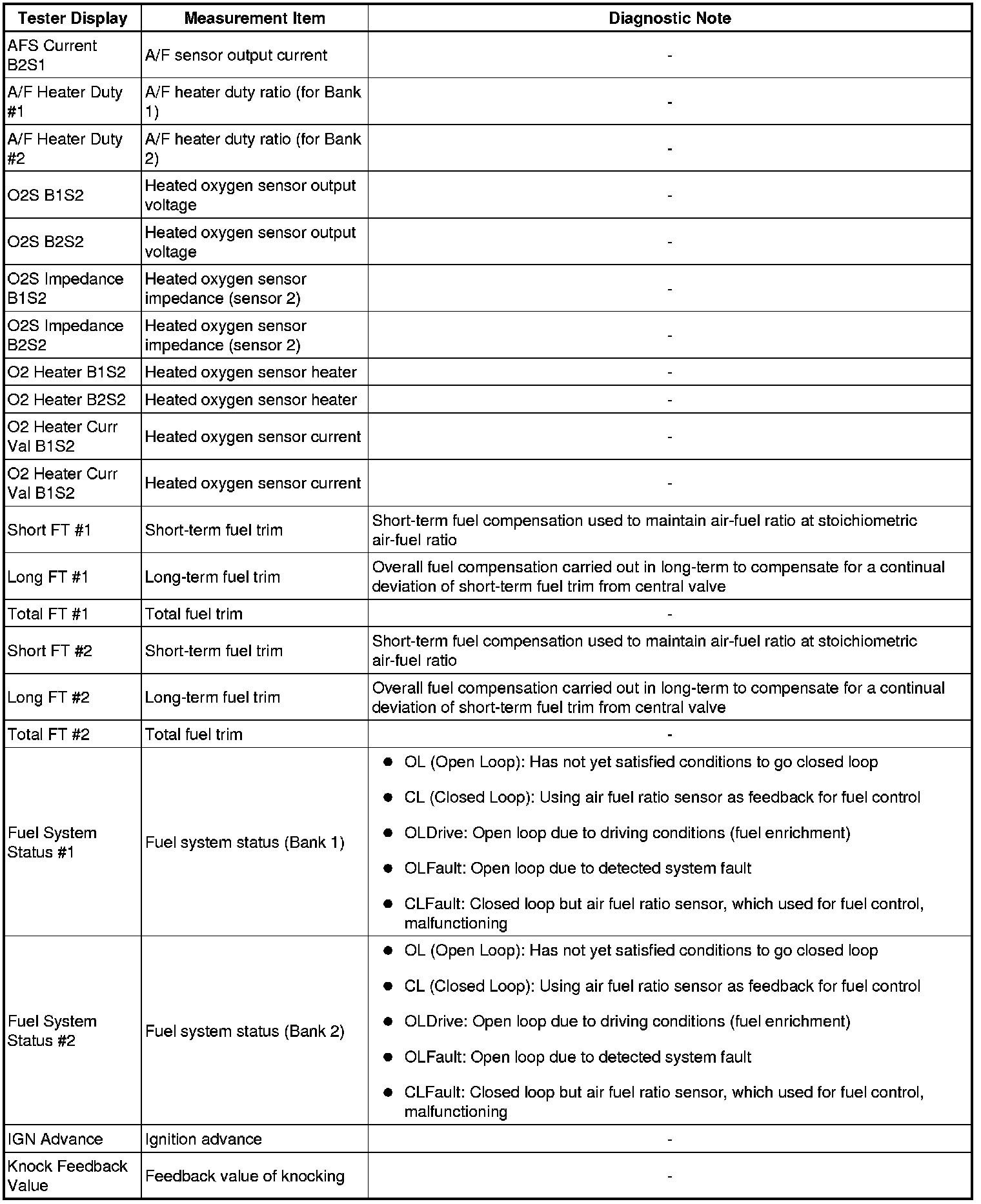 * The ECM records vehicle and driving condition information as freeze frame data the moment a DTC is stored. When troubleshooting, freeze frame data can be helpful in determining whether the vehicle was running or stopped, whether the engine was warmed up or not, whether the air fuel ratio was lean or rich, as well as other data recorded at the time of a malfunction.