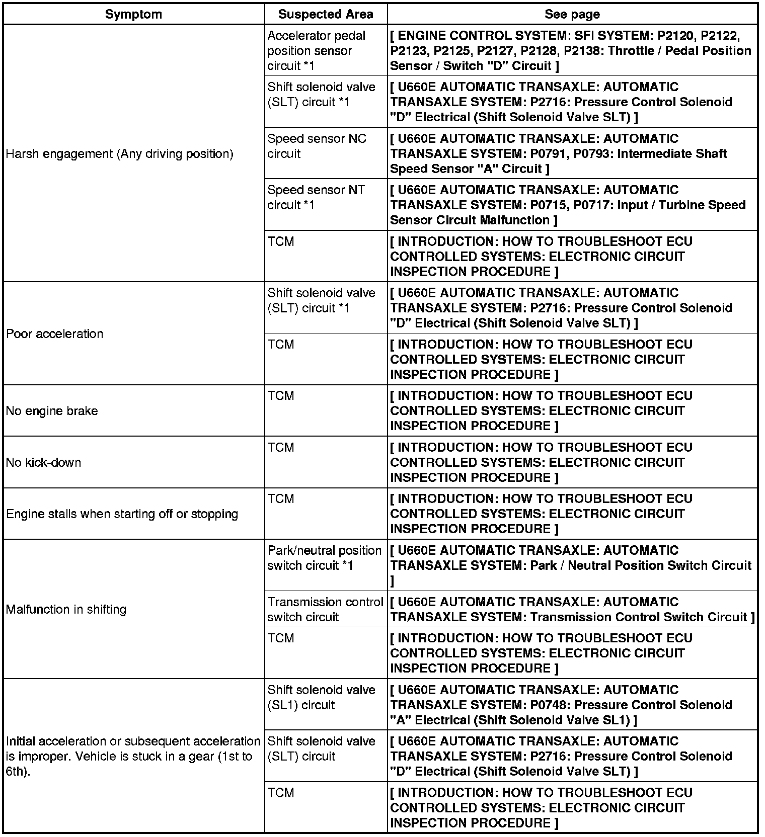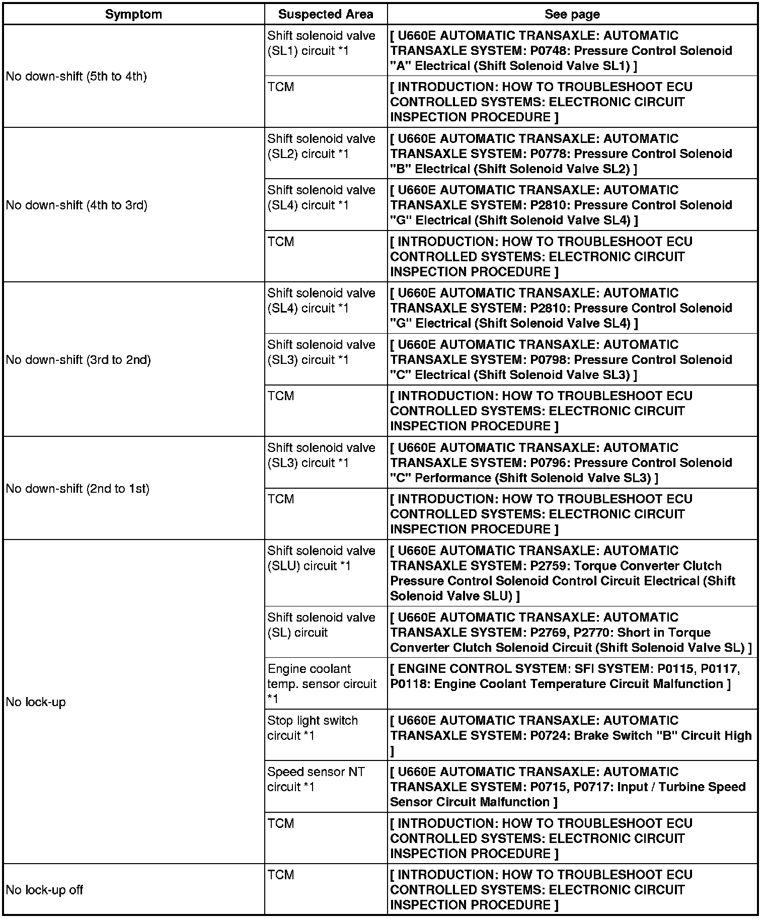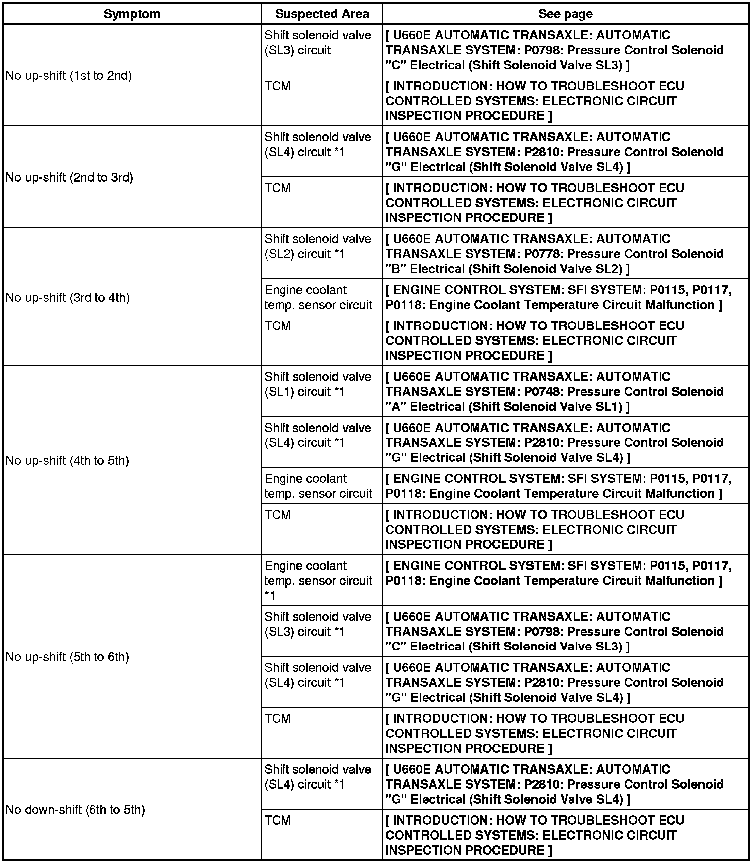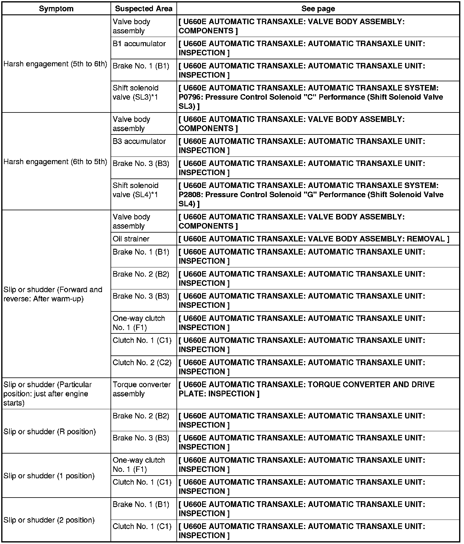 U660E AUTOMATIC TRANSAXLE: AUTOMATIC TRANSAXLE SYSTEM: PROBLEM SYMPTOMS TABLE