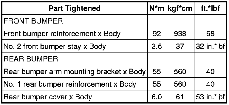 SERVICE SPECIFICATIONS: EXTERIOR: TORQUE SPECIFICATIONS