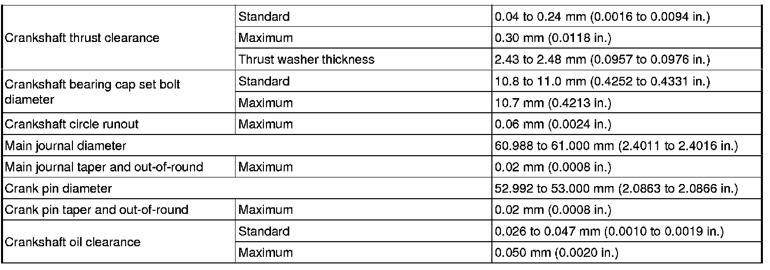 MAIN BEARING CLEARANCE, STANDARD & LIMIT