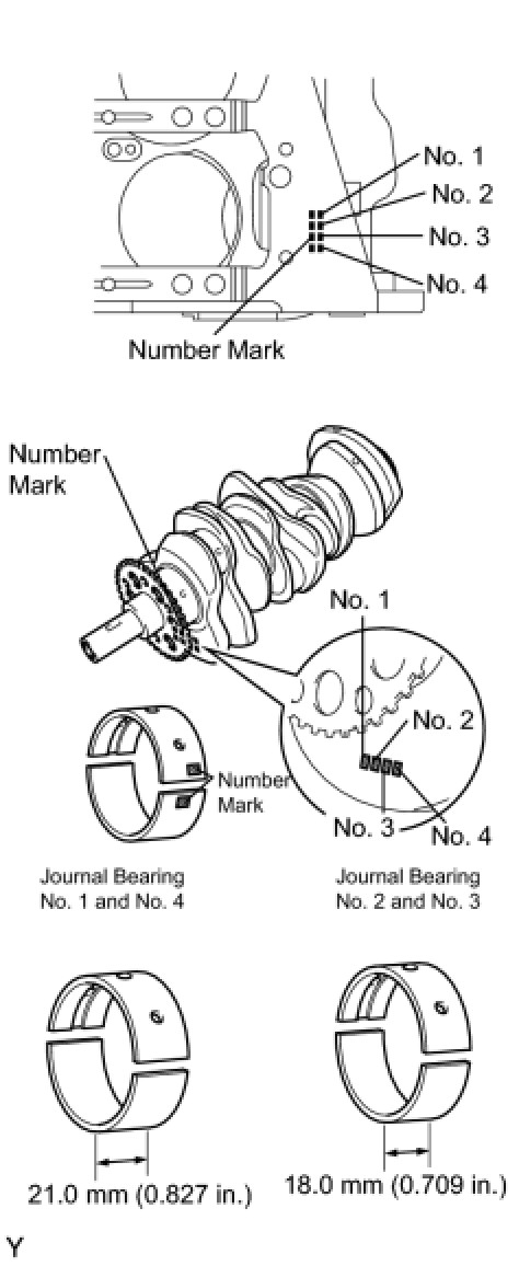 EXAMPLE: Cylinder block "11" + Crankshaft "06" = Total number 17 (Use bearing "3")