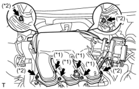 Install the intake air surge tank with the 2 nuts and 2 bolts. (*2)