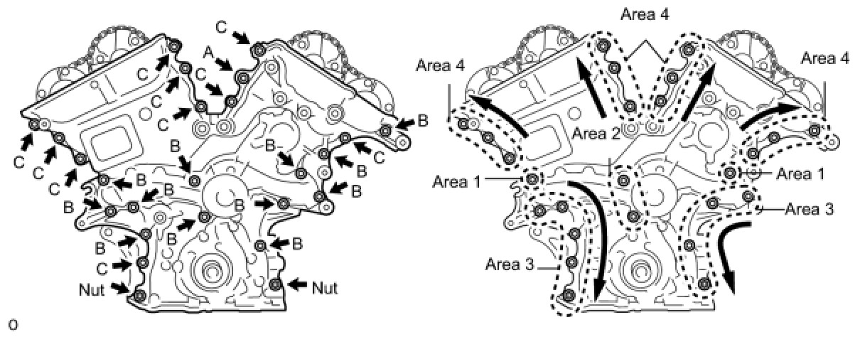 Fully tighten the bolts in this order: Area 1 and Area 2.