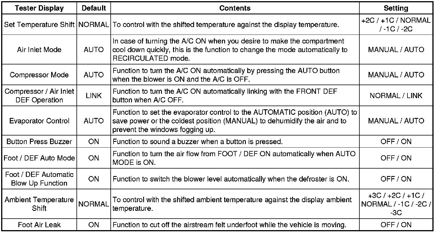 (1) The buzzer ON/OFF setting, which is a setting of the buzzer function of the combination meter, can disable the driver's seat belt buzzer and front passenger's seat belt buzzer.
