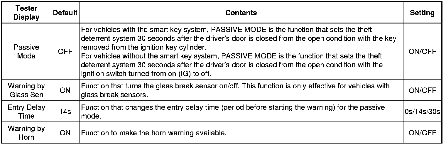 (*1): This function cannot be turned on or off if the security system is turned off.