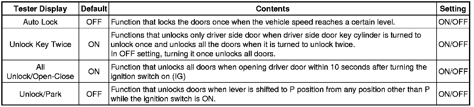 * The function only switches the entry unlock of the smart key system. It does not switch the unlocking of the wireless door lock remote control.