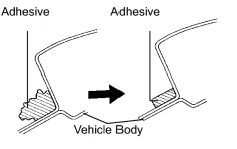 (1) Using a knife, cut away any rough adhesive on the contact surface of the vehicle body to ensure a proper fit.