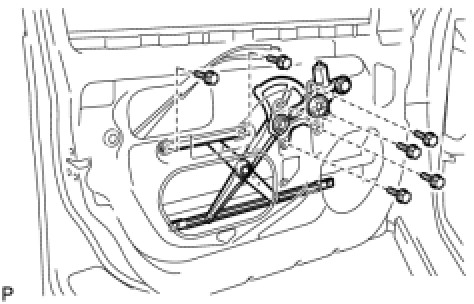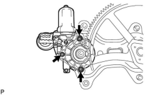 (a) Using a torx wrench (T25), install the power window regulator motor assembly LH front with the 3 torx screws.