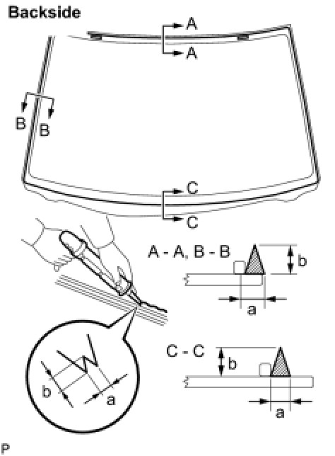 (2) Lightly press the front surface of the glass to ensure that the glass is securely fit to the vehicle body.