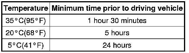 The vehicle should not be driven until the time indicated in the table below has elapsed after procedure A.
