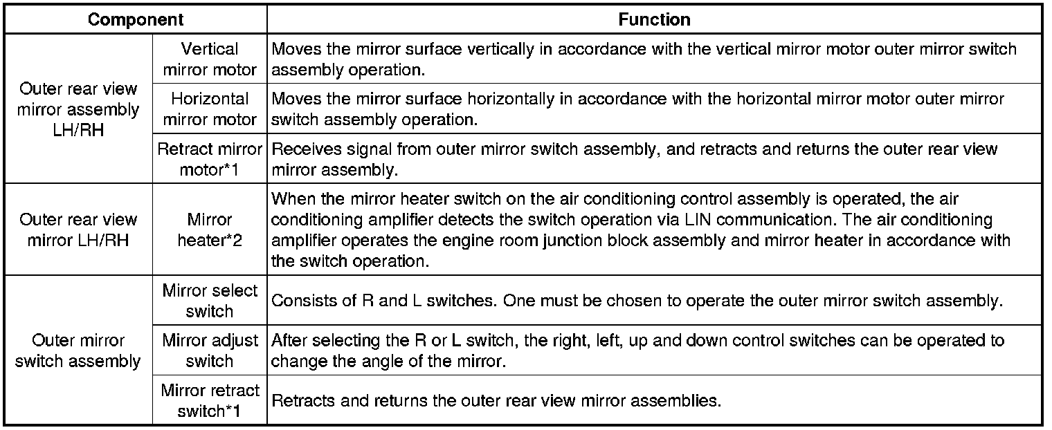 MIRROR (EXT): POWER MIRROR CONTROL SYSTEM: SYSTEM DESCRIPTION