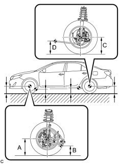 - Before inspecting the wheel alignment, adjust the vehicle height to the specified value.